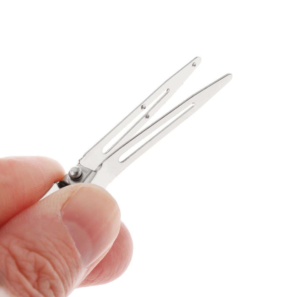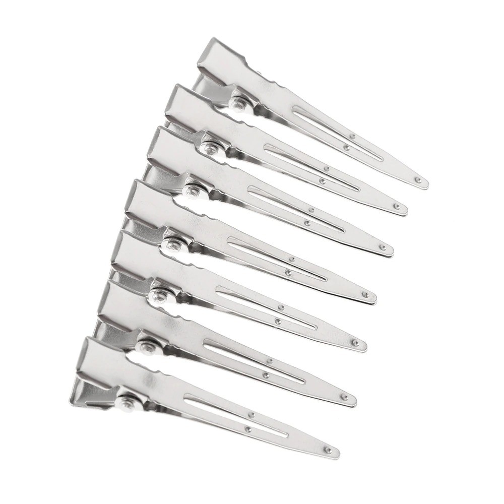These metal clips can be used for sectioning hair during cutting. They are an ideal aid for home use, as well as in hairdressing salons. They are made from durable and high-quality material.