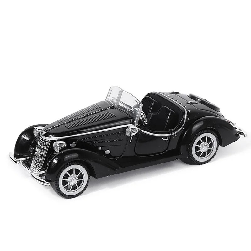 This realistic metal model of a vintage car embodies elegance and automotive tradition. Its precise craftsmanship and high-quality materials ensure that the model looks authentic and timeless. Displayed on a shelf or desk, it will immediately attract attention with its intricate design and retro atmosphere. Thanks to its metal construction, it will maintain its appearance even after many years and remain a highlight of any collection. This retro car model 1:32 is the ideal choice for all who value detail, tradition, and precise craftsmanship.