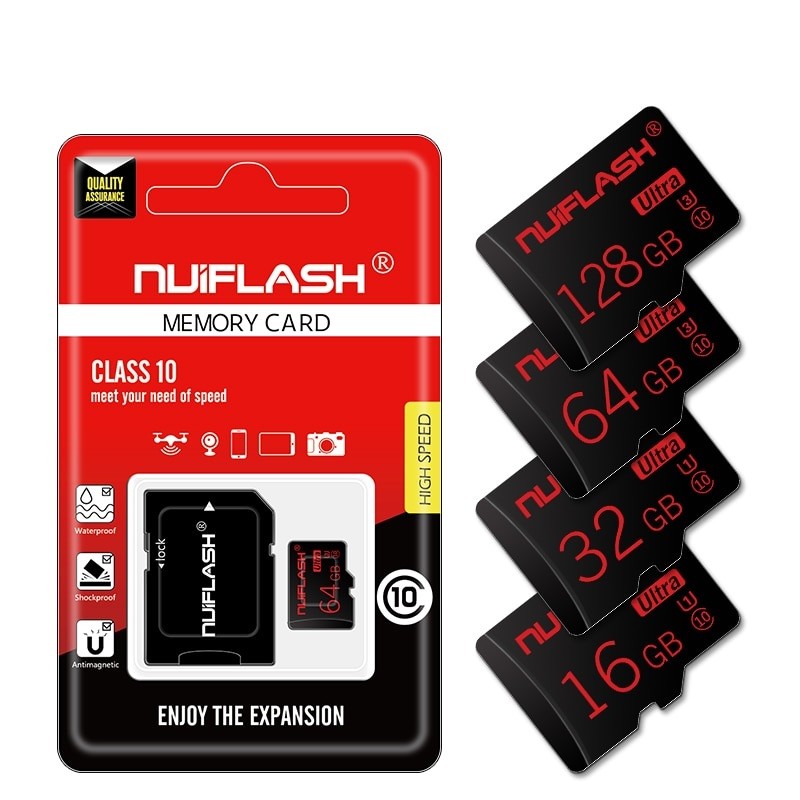 • 16GB, 32GB - UHS-I, U1 (minimum speed 10 MB/s)