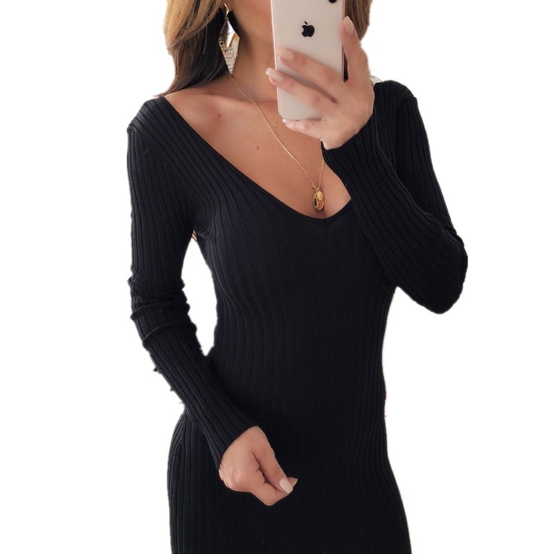 Beautiful autumn knitted dresses with long sleeves.