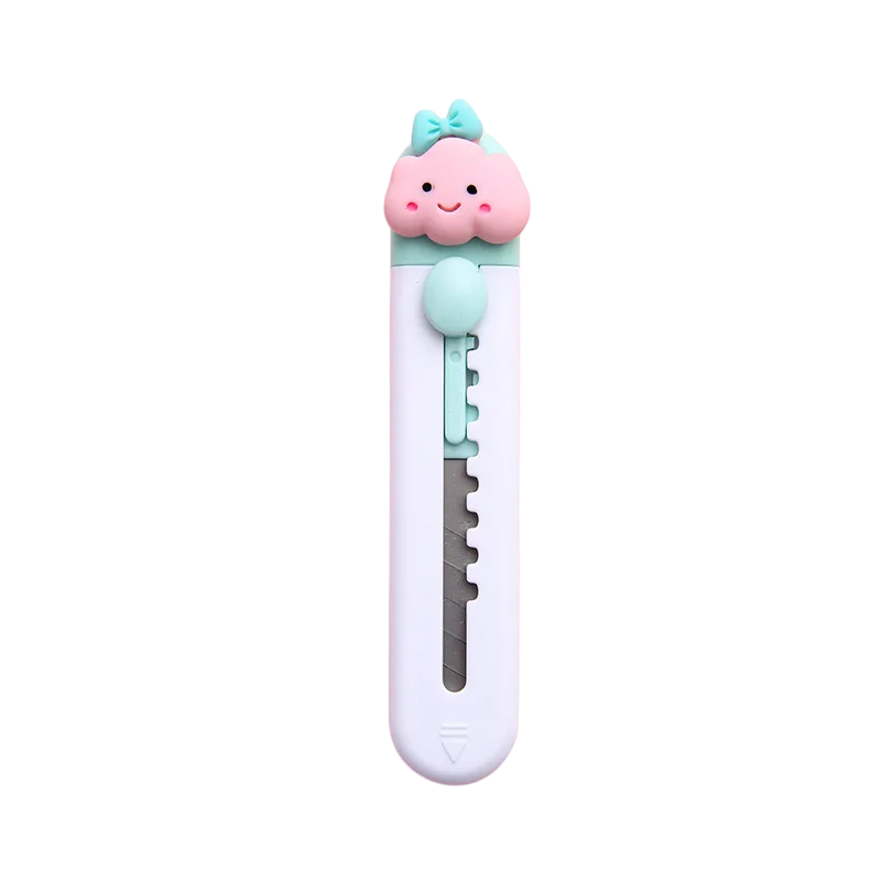 Stylish mini knife featuring a pink cloud with a bow. A compact and safe helper for parcels, letters, and small cuts at home and school. Full description
