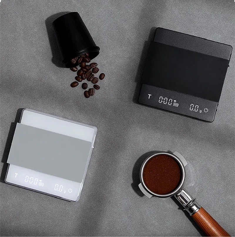 The mini digital kitchen scale is a practical assistant for all coffee lovers who want to achieve perfect flavour with every brew. With its compact dimensions and modern features, it is ideal for both home and professional environments. The scale allows for precise weighing of coffee beans, ground coffee, and other ingredients. The integrated timer helps monitor extraction time, ensuring consistent results when preparing espresso or filtered coffee.