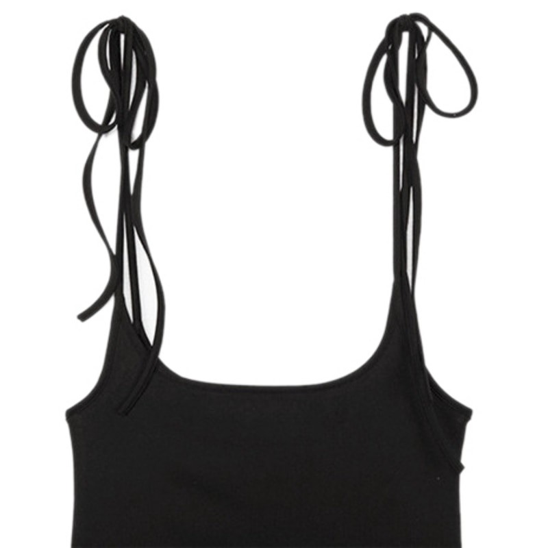Original black mini dress under the bust with tie straps.