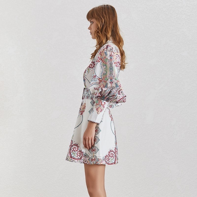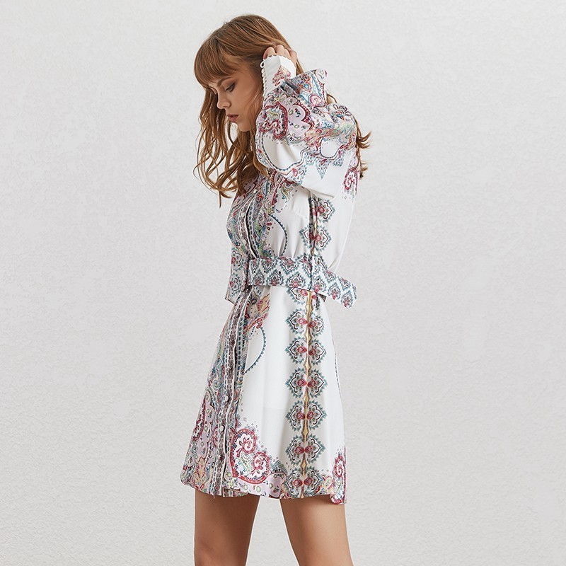 Original short dress with a shirt cut and wide sleeves.