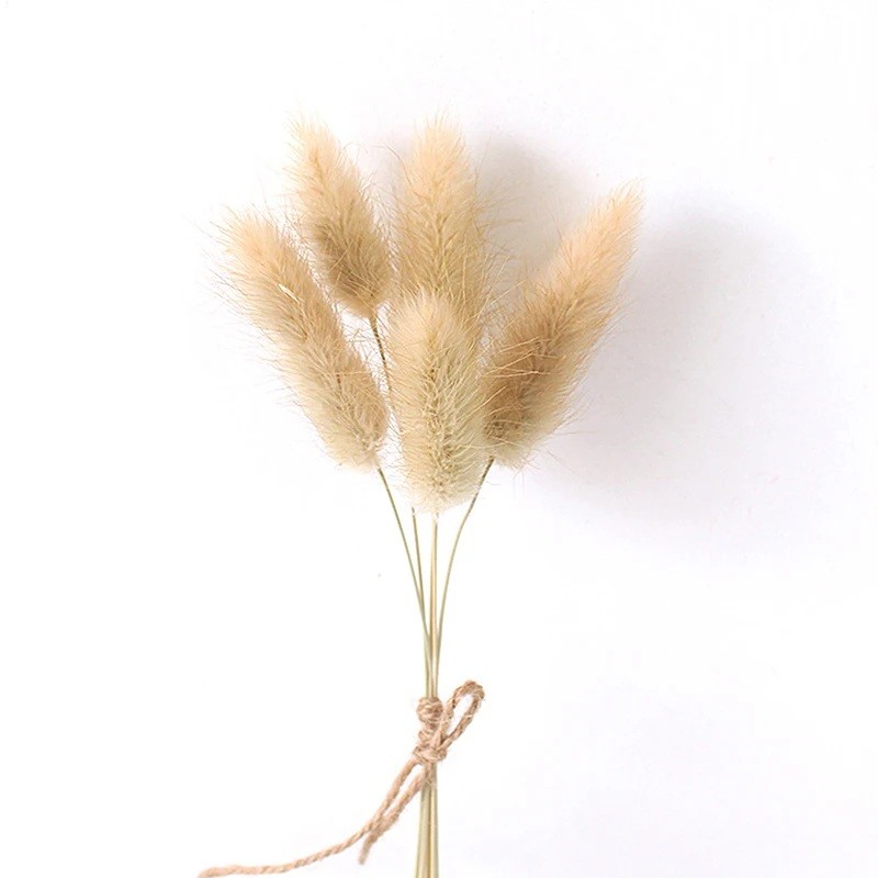 The mini grass is suitable for home decoration, weddings, birthdays, baby showers, and rustic or boho arrangements. Due to its compact dimensions, it can be used alone or as an accessory to a larger floral composition. The lightweight construction allows for easy handling and arranging as needed. The decoration adds a subtle natural accent to the space without the need for maintenance.