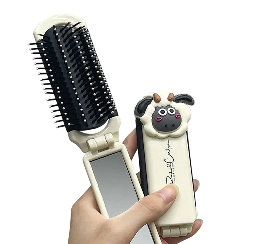 Home page Home page Health & Beauty Hair Combs Mini Folding Travel Comb with Mirror 11 x 9.5 x 4 cm White Folding Massage Hair Comb with Shaun the Sheep Decoration
