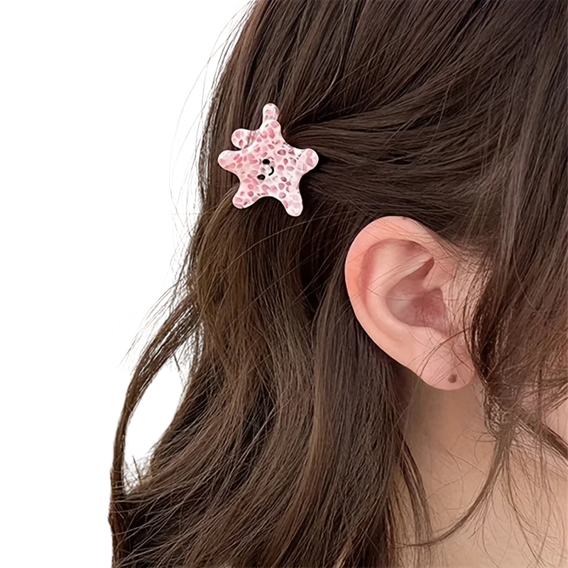 Mini Hair Clip 3.4 x 3.1 cm Pink Starfish Small Decorative Hair Clip Cute Summer Hair Accessory for Children and Women