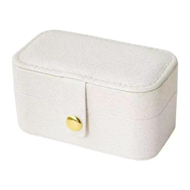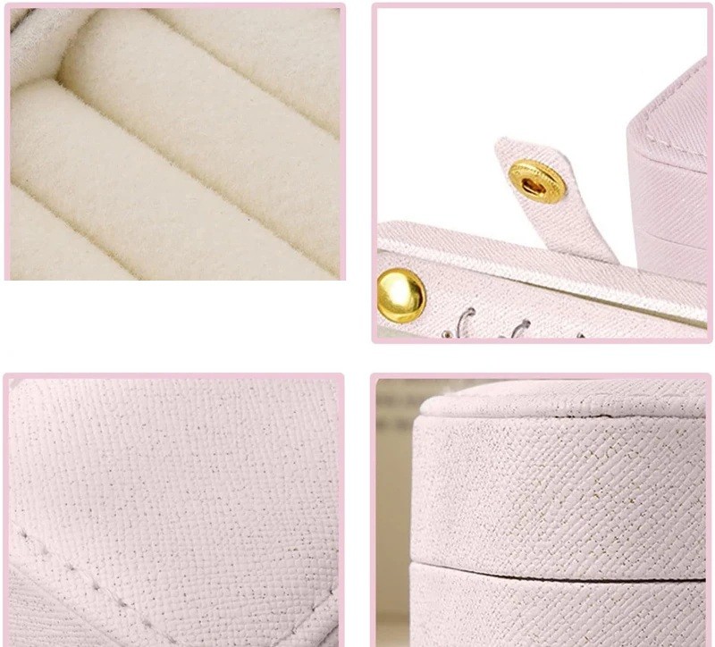 The exterior is made from faux leather with a fine surface texture. The jewellery box has small dimensions of 9.5 × 5 × 5 cm, making it occupy minimal space. The internal lining is soft and helps protect stored jewellery from scratches during storage.