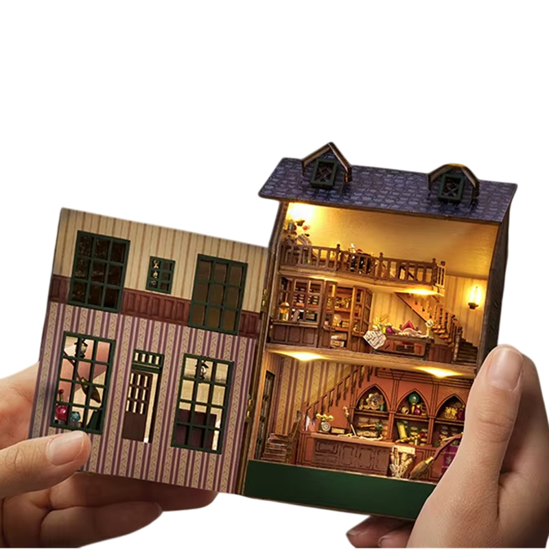 This mini DIY wooden dollhouse is the perfect choice for anyone who loves crafting, decoration, and a miniature world full of details. The house comes complete with furniture and LED lighting that adds a magical atmosphere to the entire structure once assembled. Its compact dimensions of 8.7 x 7 x 12.4 cm allow for easy placement anywhere in the home, such as on a shelf, desk, or in a display cabinet. Assembly is manual and requires a bit of patience, but the result is worth it. Glue and batteries are not included in the package, which must be taken into account during assembly.