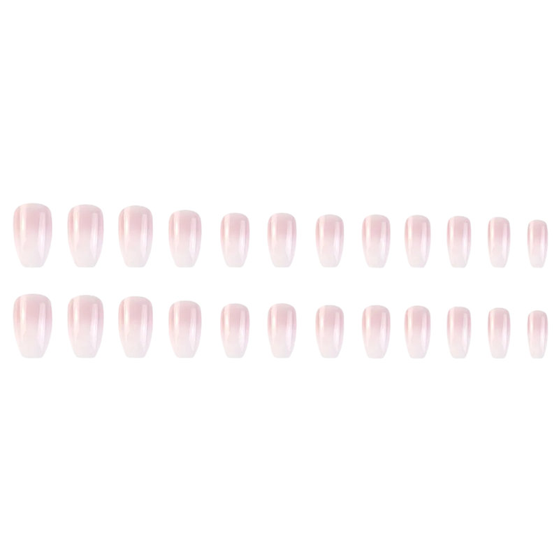 Minimalist Collection of 24 Artificial Nails Coffin Shape Medium Length Acrylic Ombre Design Adhesive Tips for Hands