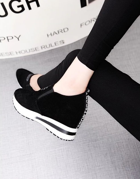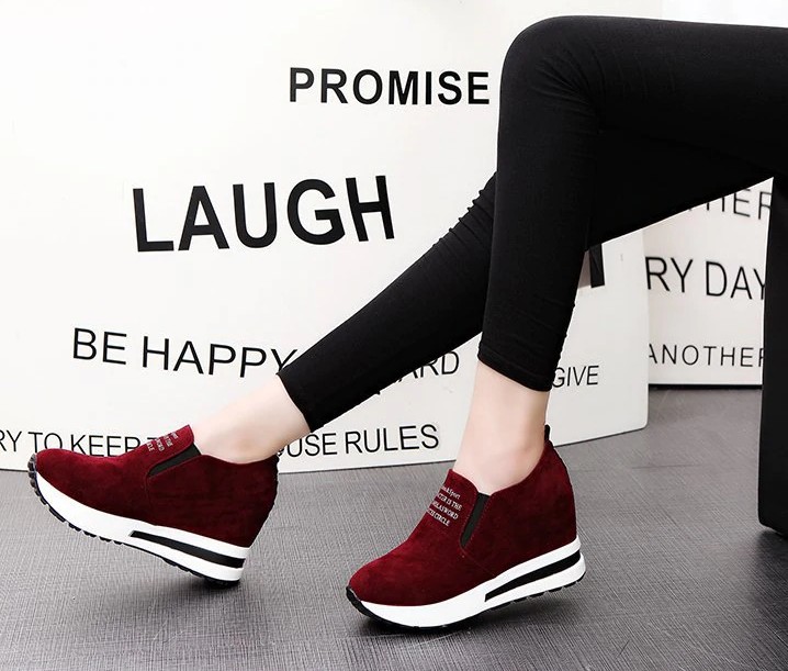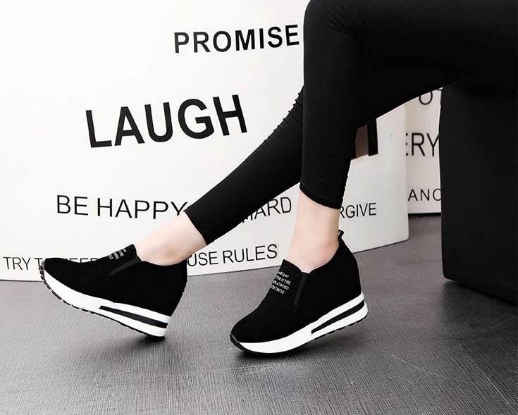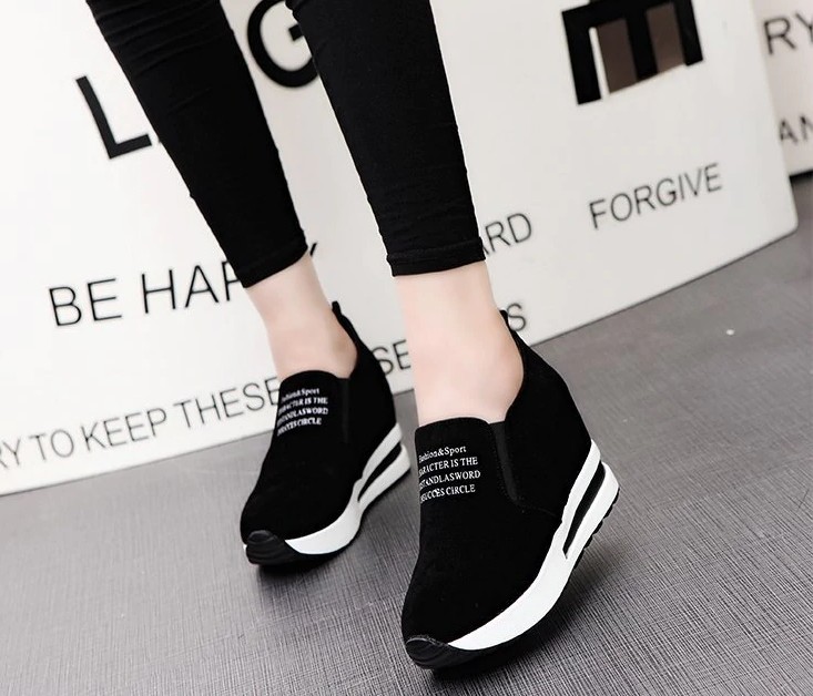 Step into these shoes that are stylish and feature a slogan on the front.