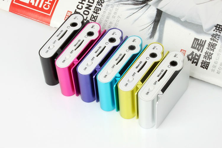 Metal MP3 player with simple controls and a slot for a micro SD card. Supports MP3 audio format