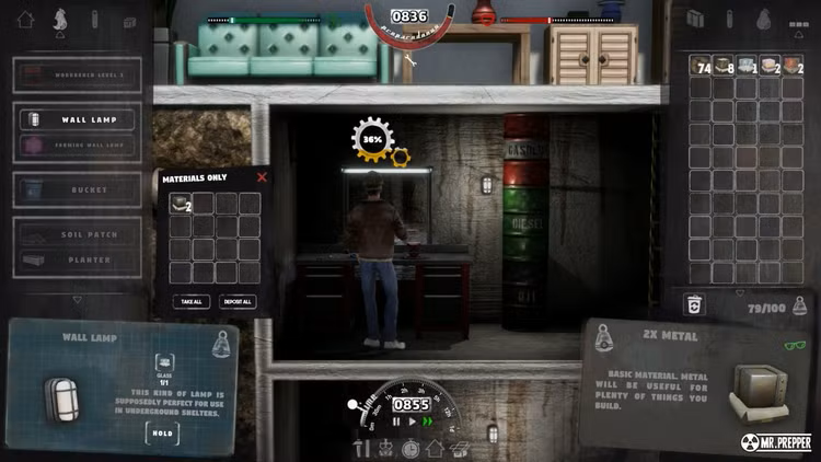 Mr. Prepper is a man who lived in the land of freedom, but everything changed with the new government. Follow orders, do as you are told, and love the President – otherwise, the secret and all-powerful Agency will target you. Mr. Prepper has decided to disobey and escape from this illusion of life. The only way to hide his plans and activities is to build an underground bunker and create a machine that will help him get away. But for that, he needs materials, time, and secrecy. Help him succeed and break the status quo.