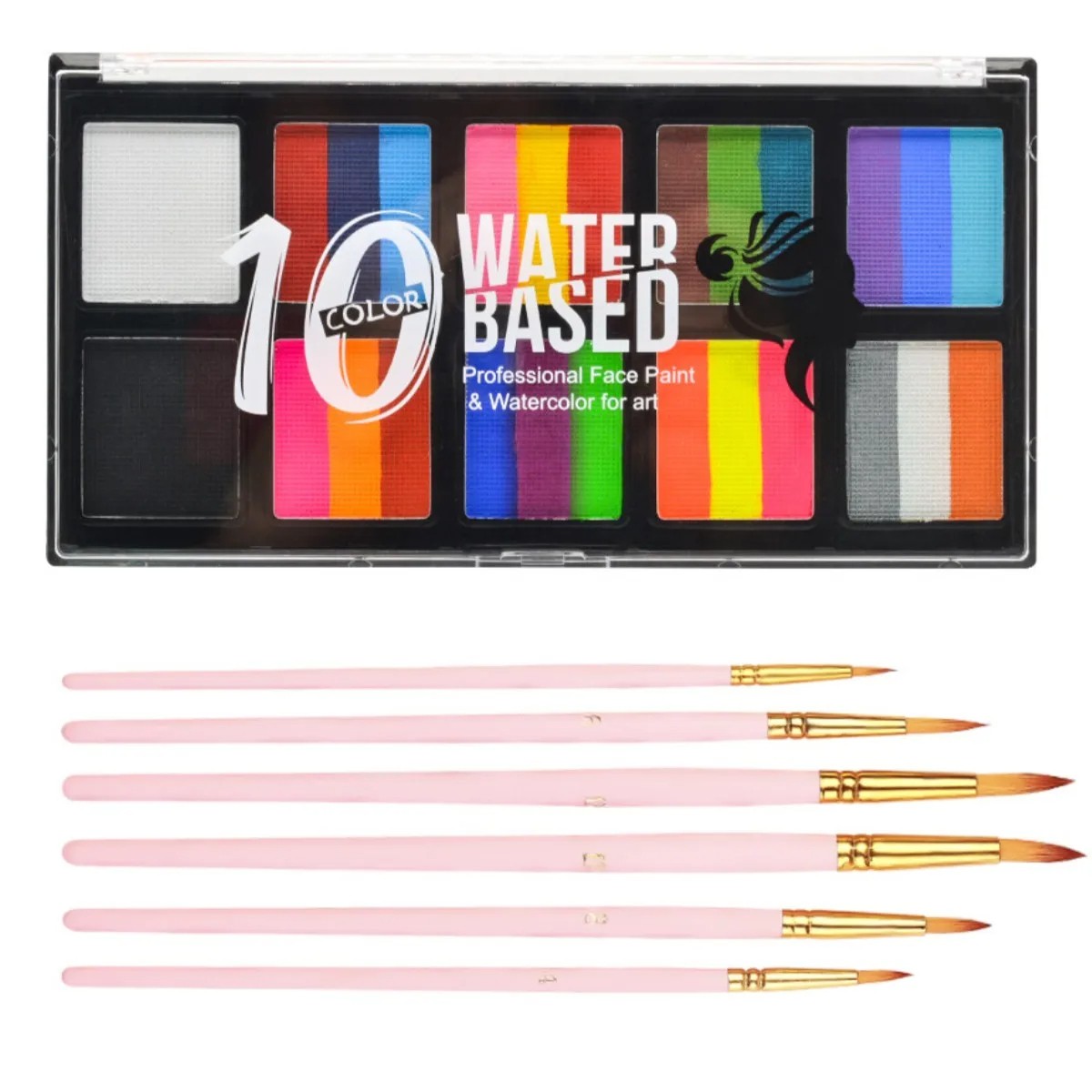 Professional face and body colour palette with brushes, ideal for Halloween make-up and creative cosmetics with a long-lasting effect. Full description