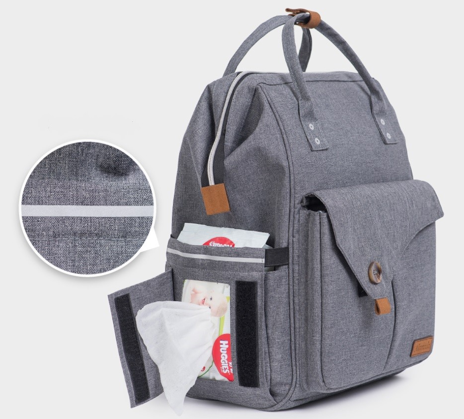 On the side of the backpack, there is a large pocket for wet wipes. No need to open the backpack!