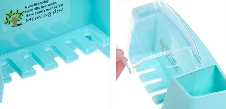 On each side of the holder, there is a compartment that can be used for storing toothpaste, cosmetic brushes, and razors.