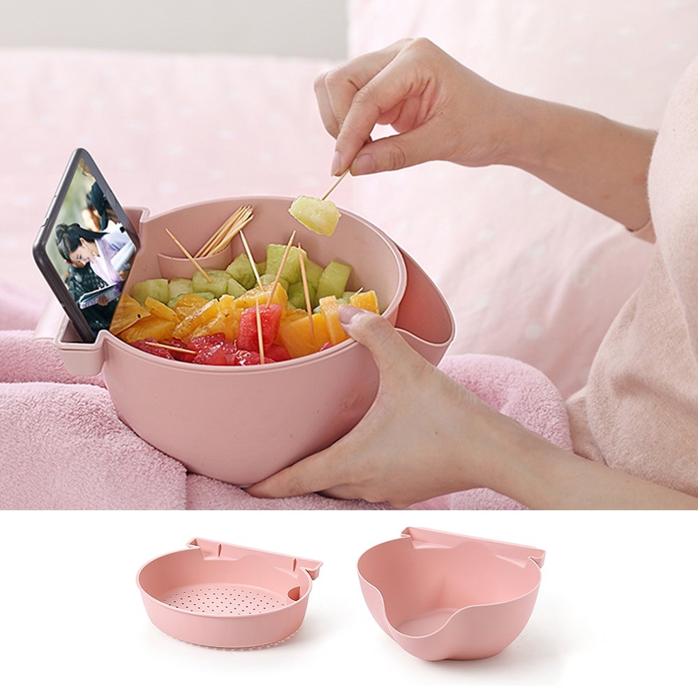 The bowl has two layers - the top one with a sieve and the bottom one for draining water - suitable for washing fruit.