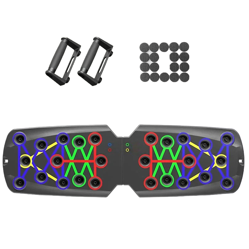 • Multifunctional Design: This board is designed to allow you to perform many different exercises that strengthen various body parts. It features handle openings that are colour-coded according to which muscle groups you can enhance. The red handle strengthens the shoulders and trapezius, the blue strengthens the chest, the yellow strengthens the back, and the green strengthens the triceps.