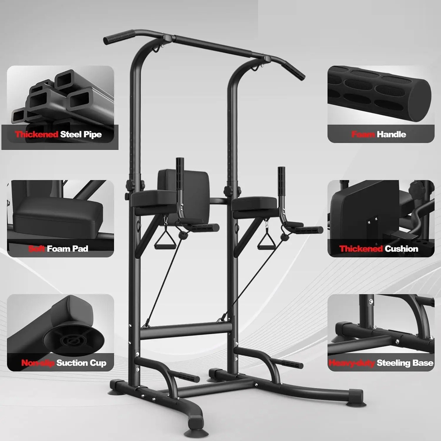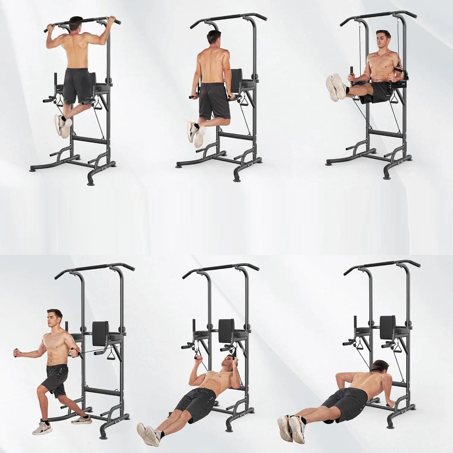 • Multi-level handles and supports for bodyweight exercises