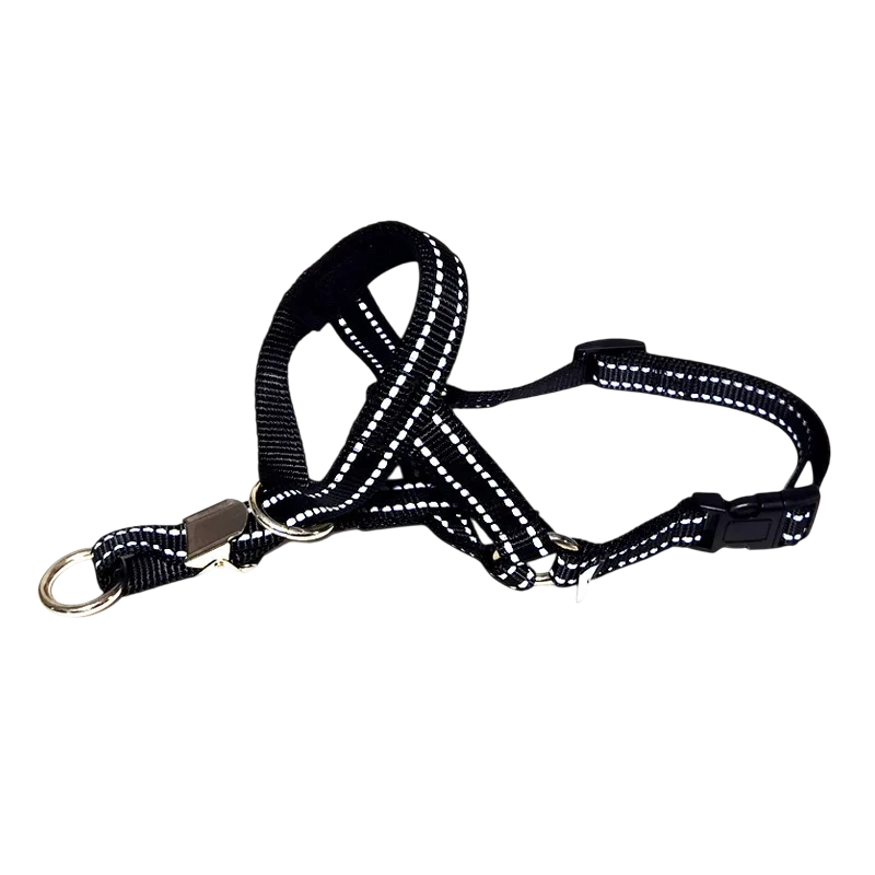 This nylon dog muzzle harness represents the ideal combination of safety, comfort, and functionality for everyday walks or training of your pet. Thanks to the adjustable straps, it can be easily tailored to the size of the dog, ensuring optimal comfort and stability when worn. The breathable design allows the dog to breathe freely, while the soft inner lining prevents chafing and discomfort. This model in size S is intended for smaller breeds of dogs with a muzzle circumference of 19.6–24.6 cm and a neck circumference of 27.4–33.5 cm.
