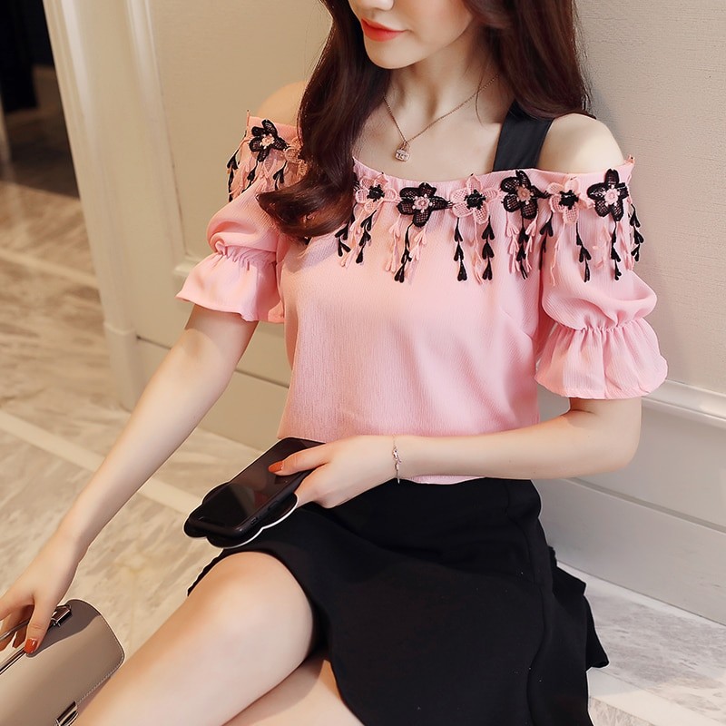 This blouse is perfect for summer. The blouse features off-the-shoulder design.