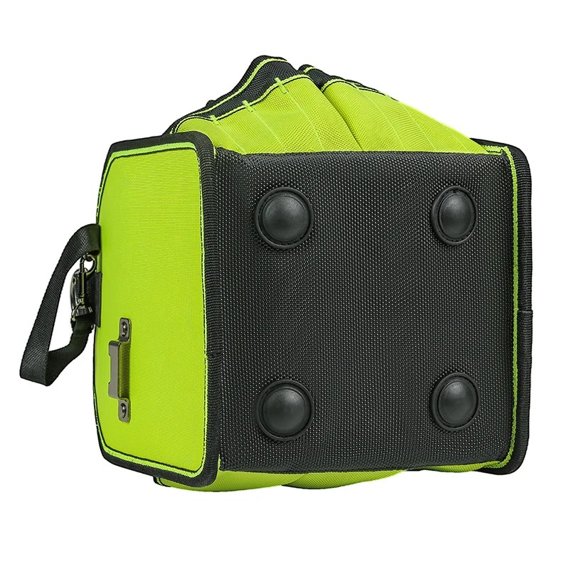 The ergonomically designed rotating handle allows easy access to tools from any side and ensures maximum practicality while working. The reinforced base with protective feet protects the bag from damage on rough surfaces and increases its lifespan. The adjustable shoulder strap and sturdy seams ensure that the bag can withstand full loads.