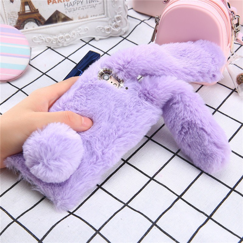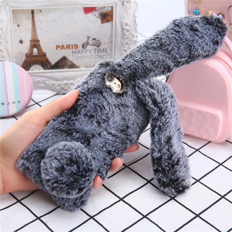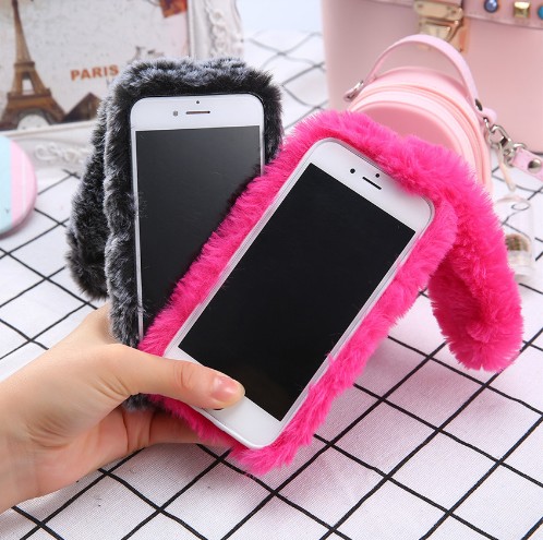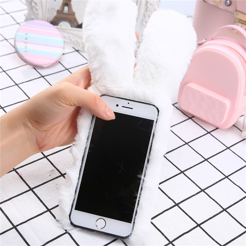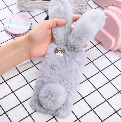 Beautiful fluffy case shaped like a bunny will delight any young lady.