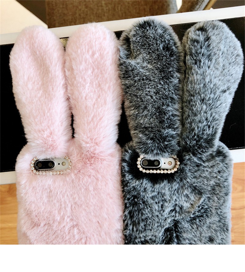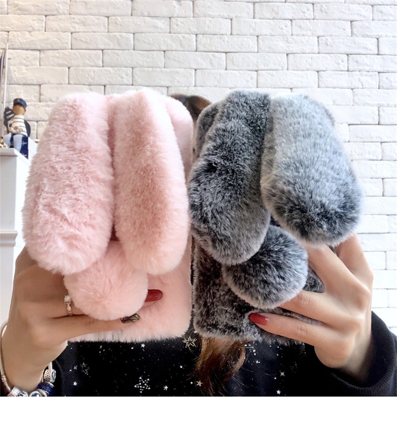 Beautiful fluffy case shaped like a bunny will delight every girl.