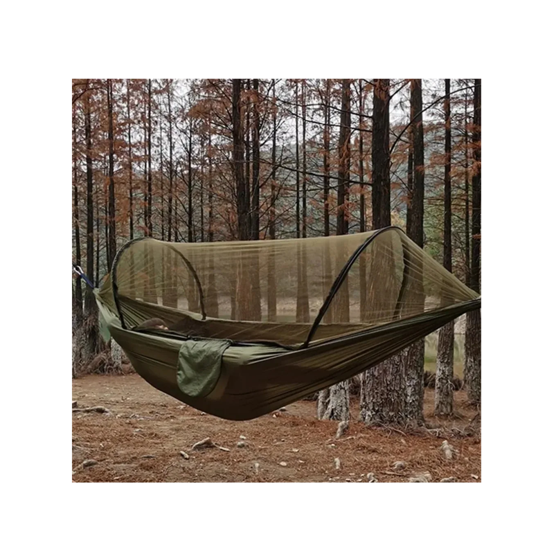 This outdoor hammock with a mosquito net offers a great solution for safe and comfortable relaxation in nature. It combines lightness, strength, and protection, so you can take it anywhere with you. You will use it while camping, on trips, at festivals, or while lounging at home in the garden. Thanks to its compact packing, it easily fits into your backpack and takes up little space. Enjoy a peaceful sleep without bothersome insects and relax fully in nature.