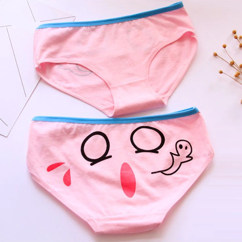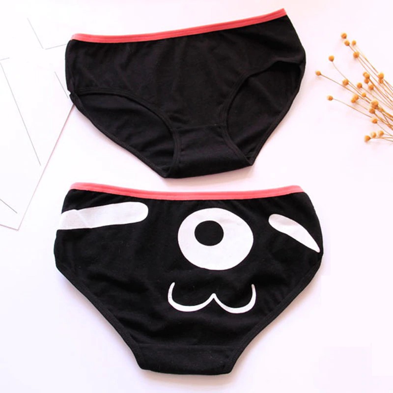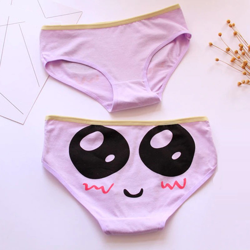 The pants are simple at the front and feature a cute face with eyes at the back.