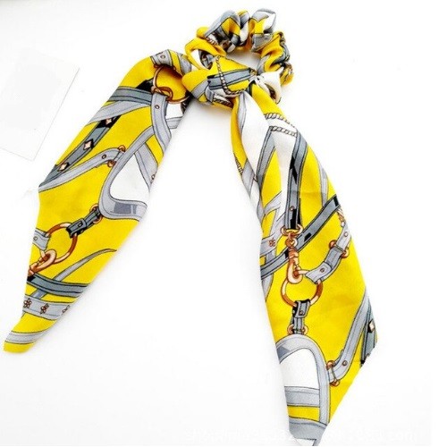 The hair tie is similar to a scarf and has a beautiful pattern.