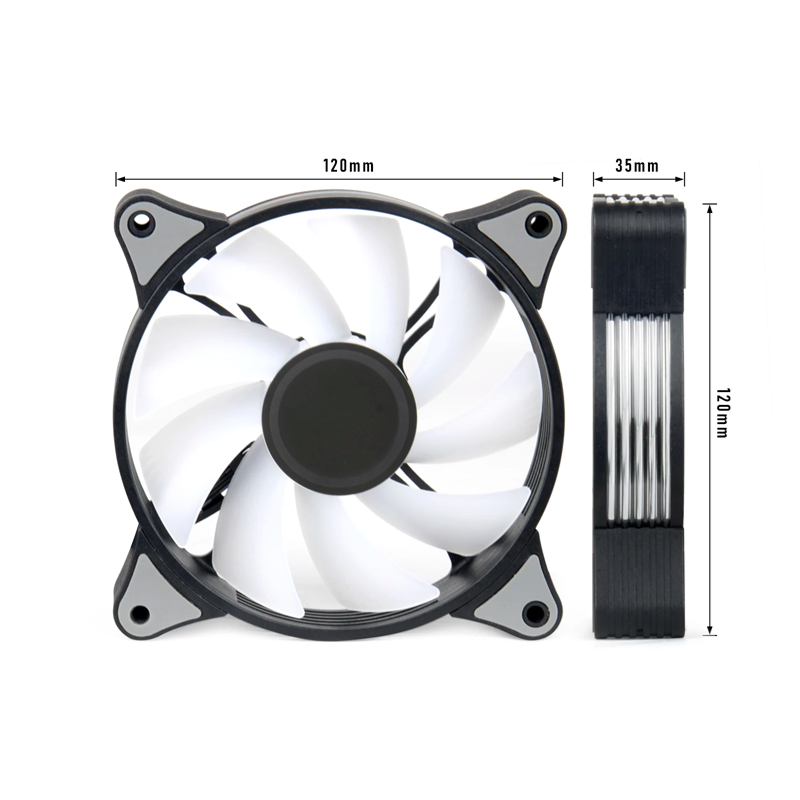 PC Fan 12 x 12 x 2.5 cm RGB Lighting 800-1600 RPM Silent Computer Cooler Powerful Cooling LED Light Effect