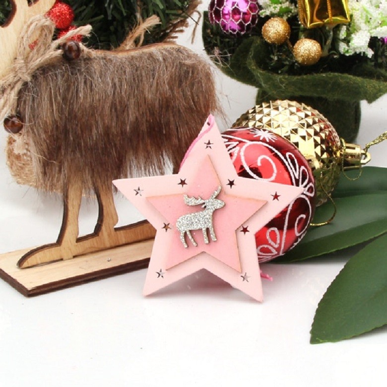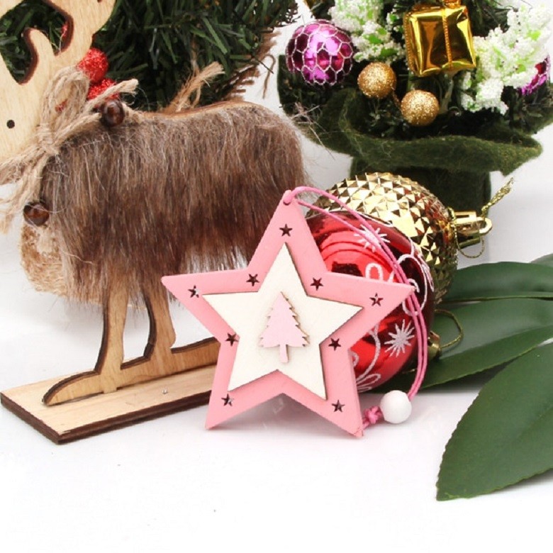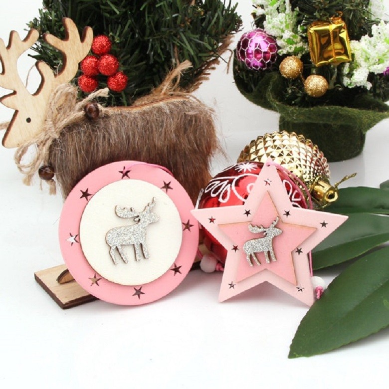 A set of beautifully carved Christmas ornaments in pink colour.