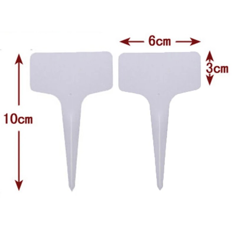 Set of 50 T-shaped plastic labels measuring 10 cm in length. Durable, waterproof, easy to write on, and ideal for flower beds and pots. Full description
