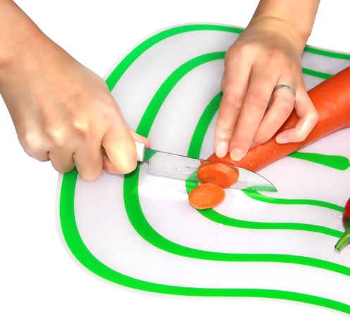 The board is flexible, making it easy to pour chopped ingredients into a pot.