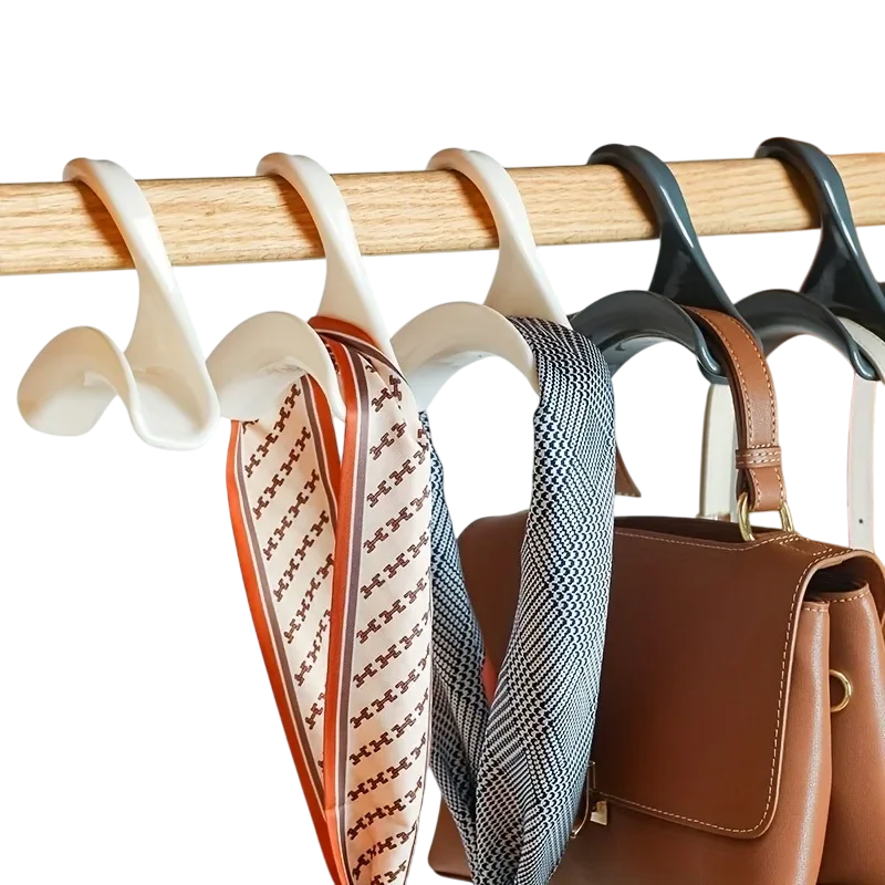 These plastic hangers are the ideal solution for organising bags, ties and belts in your wardrobe or chest of drawers. Thanks to their compact dimensions of 10 x 10 x 3.5 cm, they are very practical and space-saving. The hangers are made from lightweight yet durable plastic, ensuring long-lasting use and easy handling. The set of 10 pieces allows you to organise multiple accessories at once, significantly improving clarity and order in your home. Additionally, they are universal and fit most standard wardrobes and chests of drawers.