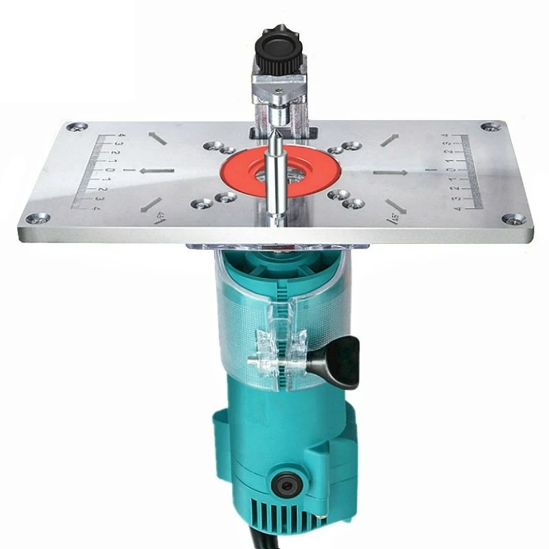 Universal milling and engraving plate with rings of various diameters, ideal for precise carpentry work and secure tool fastening. Full description