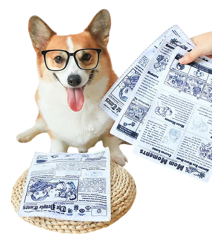 The sound effect encourages repeated interaction and keeps the dog active for longer periods. The toy is ideal for solo play as well as playtime with the owner. Its flat shape makes it easy to carry and allows the dog to grip it naturally. The plastic newspapers can help divert attention from inappropriate household items. The simple concept without complex parts allows for immediate use without preparation.