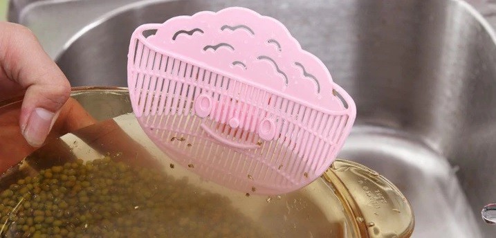 The plastic smile will help you easily rinse rice or pulses without any loss.