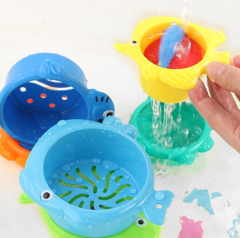 Children's water moulds with holes. Bath time fun for the little ones. Easily graspable moulds for small children.