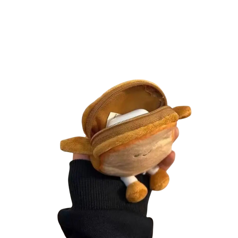 Cute plush wallet in the shape of toast, ideal for coins, keys or headphones. Suitable as a gift, toy or backpack accessory. Full description