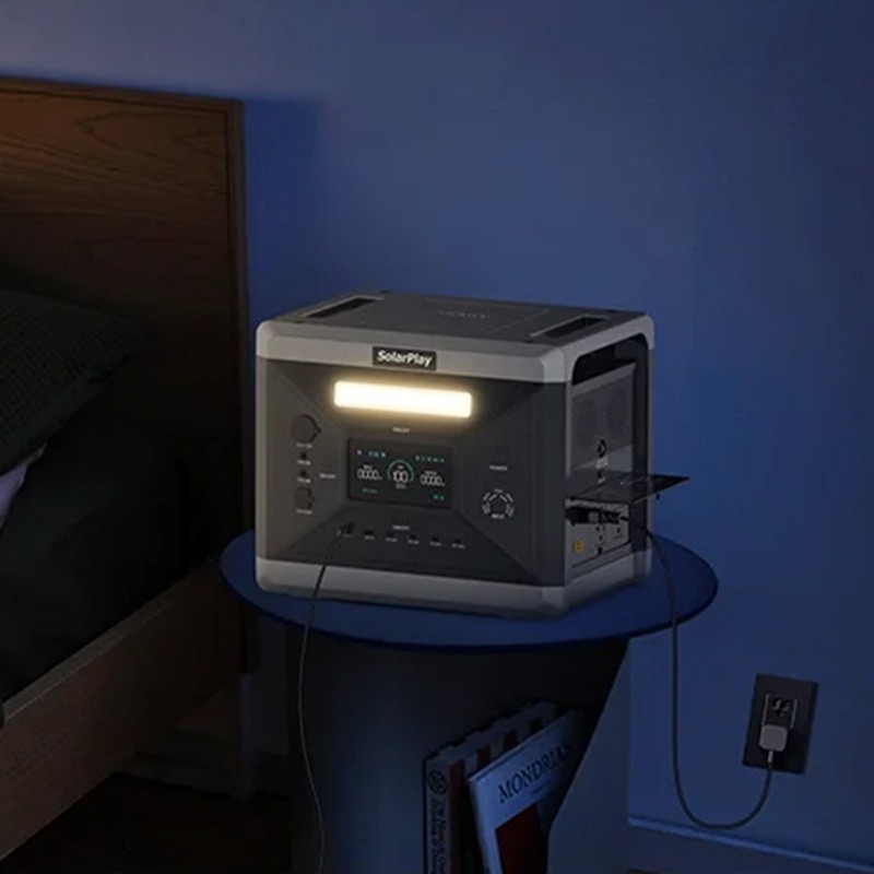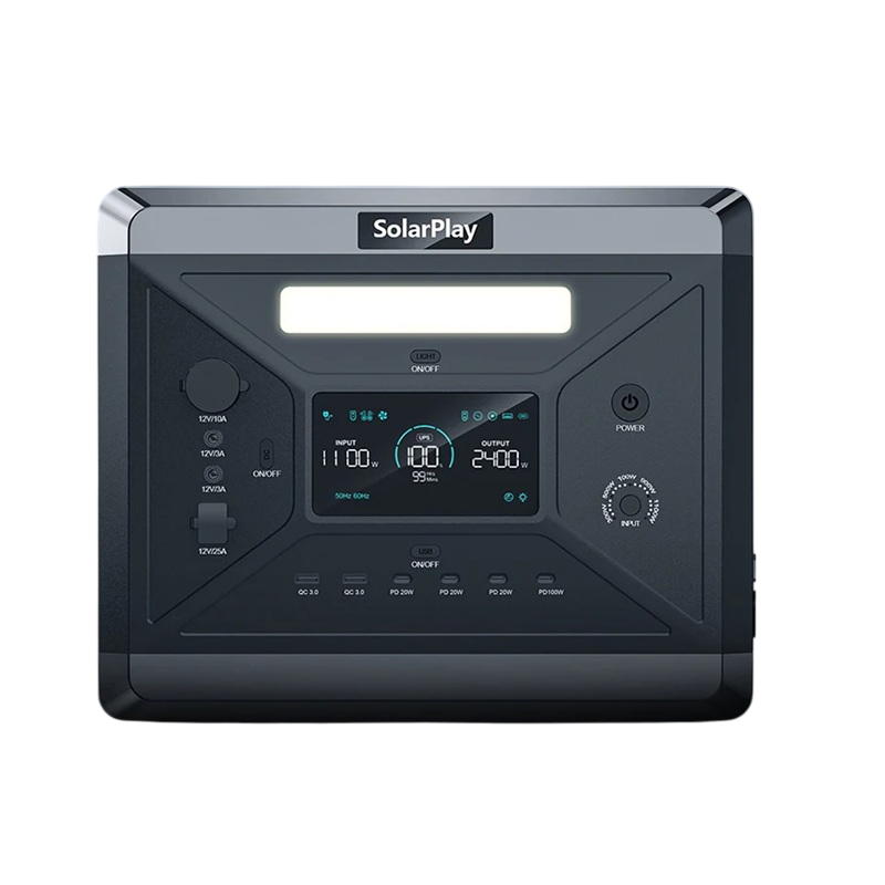 Powerful power station with LiFePO4 battery and 2400W inverter, UPS and BMS protection, LED light and fast 1.5h charging for home and outdoor use. Full description