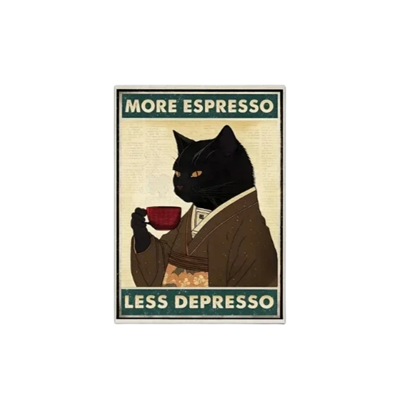 Home page Home page Home & Household Supplies Decorations & Home Accessories Frames & Pictures Poster 30x40 cm Black Cat with Espresso More Espresso Less Depresso Retro Art Japanese Style Kitchen or Café Decoration