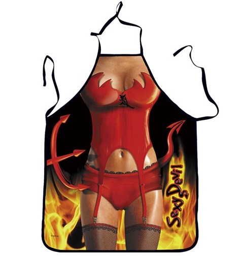Practical kitchen aprons with a fun print that will entertain your friends in the kitchen and at barbecues.