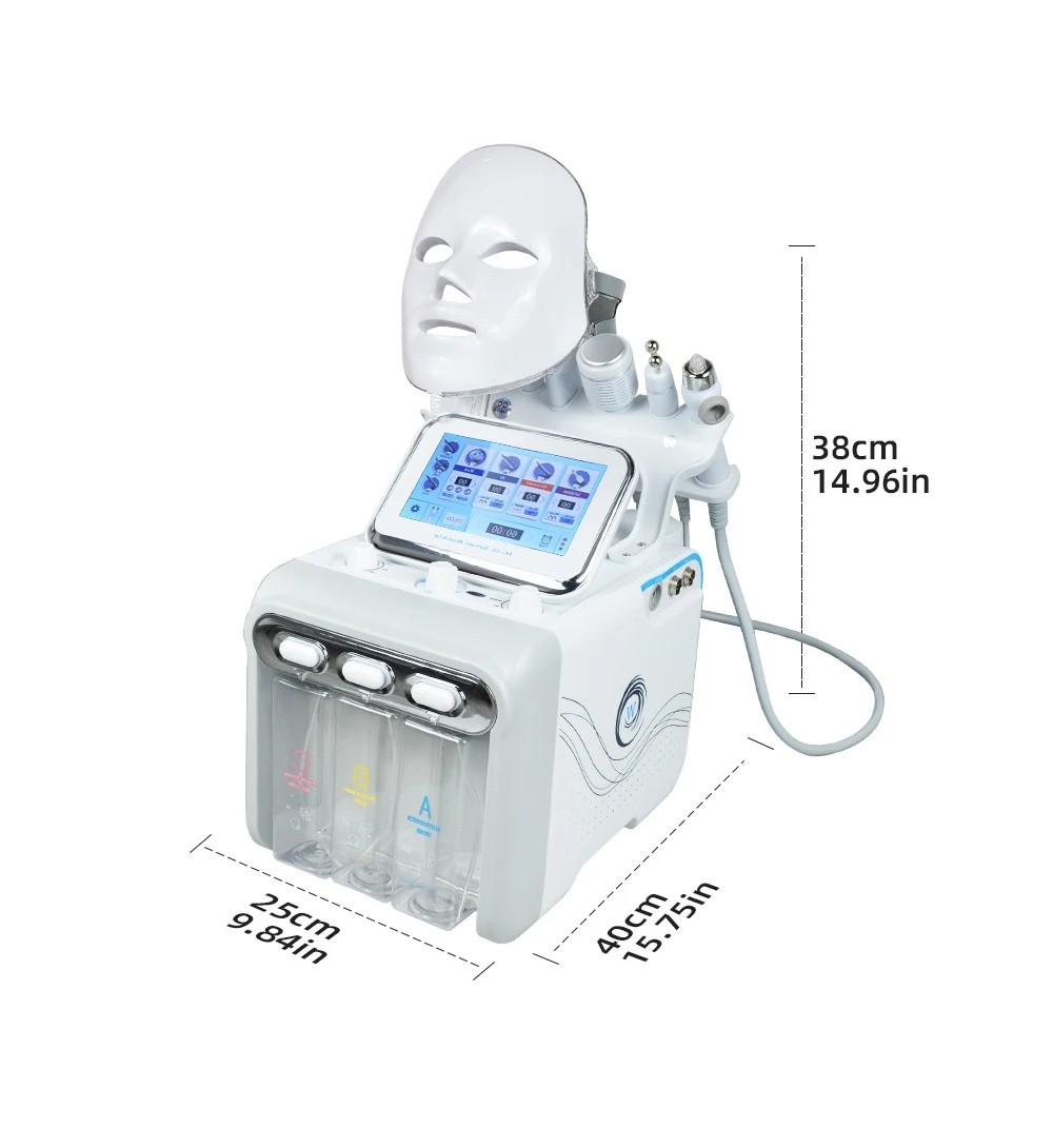 Professional 7-in-1 HydraDermabrasion Device for Skin Cleansing and Rejuvenation with LED Mask and Radiofrequency for Beauty Salons