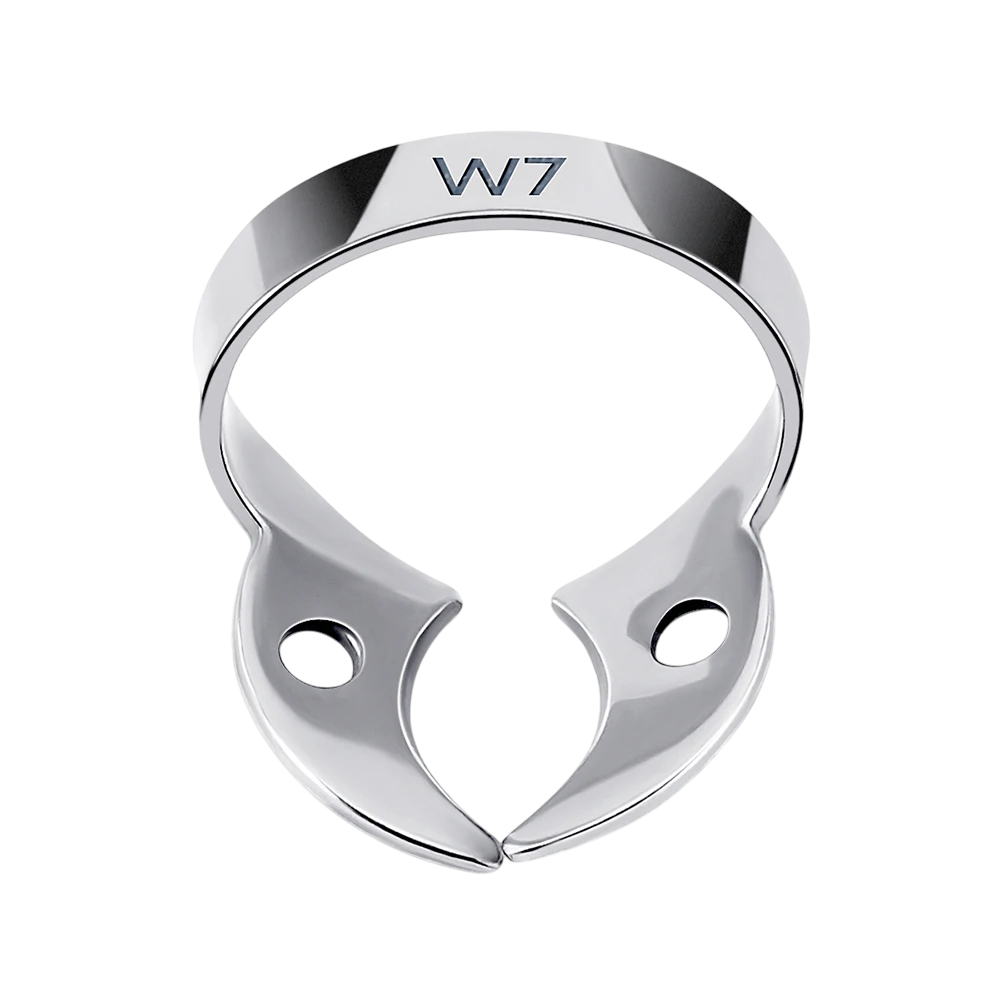 This professional stainless steel clamp is designed for the needs of dentists and dental technicians. With its special shape and sturdy construction, it allows for stable and secure fixation of the rubber dam, keeping the working area dry and protected. The stainless steel material provides maximum corrosion resistance and allows for repeated sterilisation without loss of quality. The W7 model combines precise processing with an ergonomic shape for easy handling and comfortable use even during longer procedures. It is intended for wide use in dentistry, endodontics, and restorative procedures.