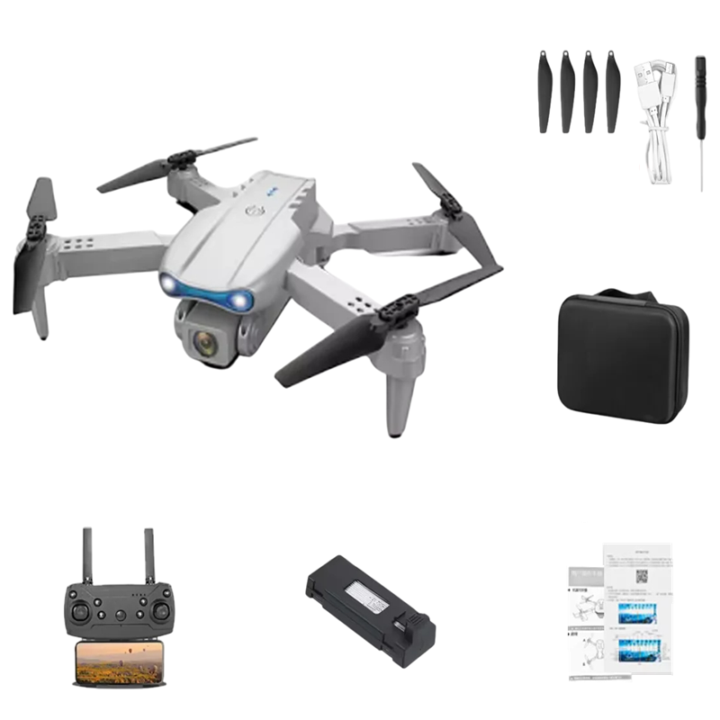 This professional folding drone is the ideal choice for anyone looking to create sharp aerial shots in 4K resolution. With the front camera featuring 50x digital zoom, you can capture detailed images even from a great distance. The real-time image preview is transmitted via WiFi FPV transmission directly to your mobile phone. The drone is easily controlled via the app or the included remote control and is equipped with a LED light for better visibility during twilight or night flights. Thanks to its compact size of 28 x 22 x 5.3 cm and folding design, you can easily take it with you anywhere.