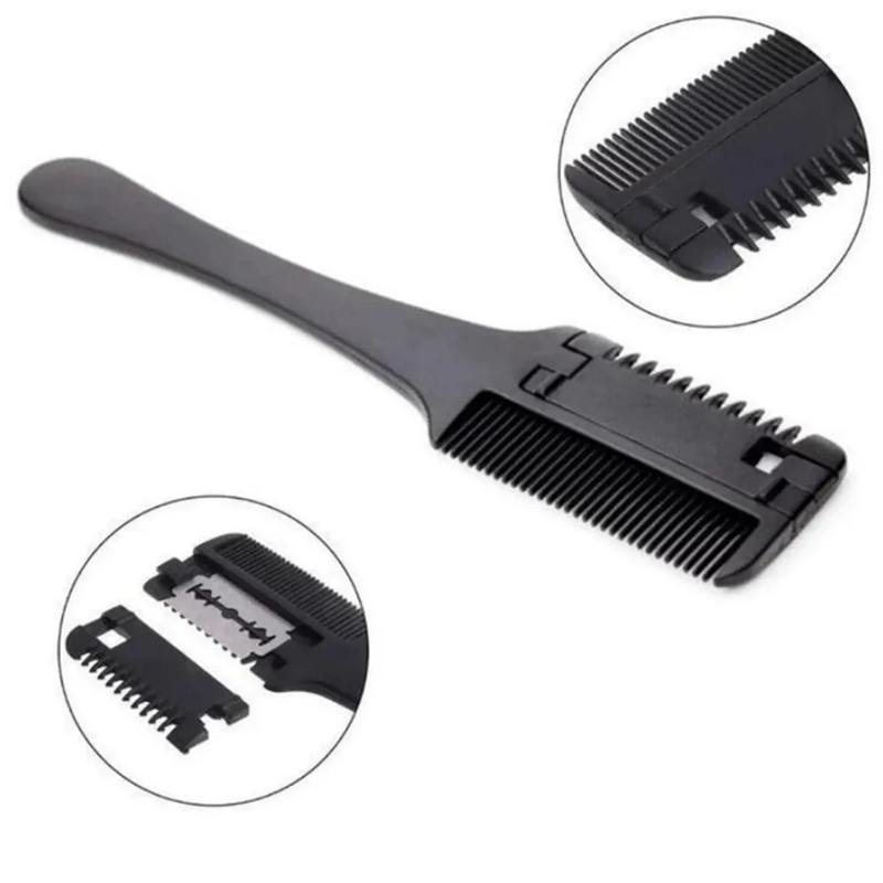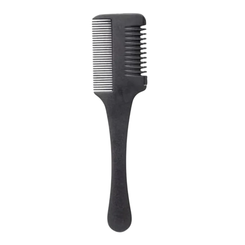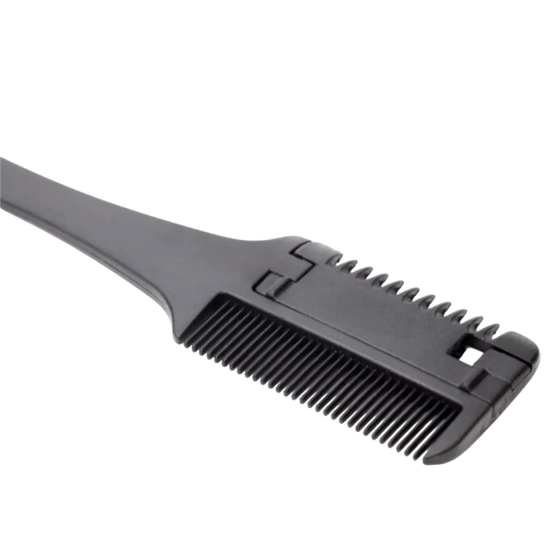 This professional hair cutting comb is a practical tool that combines the function of a classic comb and a sharp blade. Thanks to this combination, it allows you to easily and quickly cut, thin and shape hair without the need for complicated hairdressing tools. The ergonomic black handle ensures a comfortable grip, while the sharp replaceable blades allow for long-lasting and effective use.