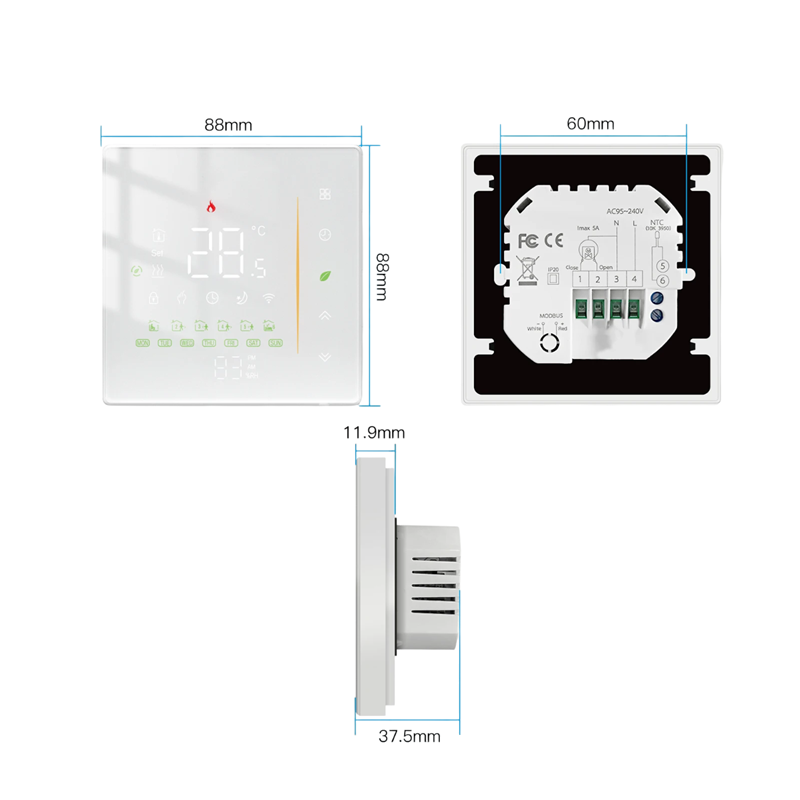 Home page Home page Home & Household Supplies Smart Home Programmable Thermostat for Gas Boiler Zigbee 88x88 mm Smart Home Control via App 5+1+1 Mode 4 Daily Phases