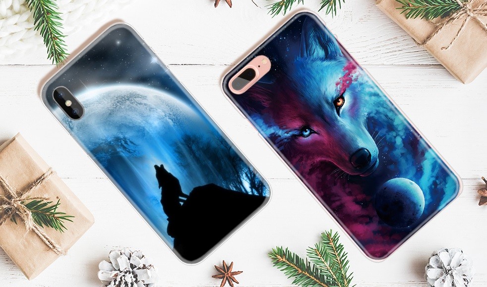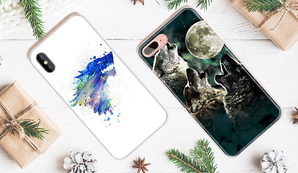 The case has a perfect appearance and high-quality processing of the graphic motif of wolves.